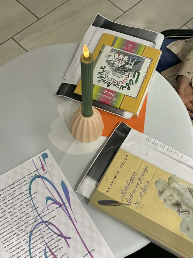 Poezija je tako postala most bliskosti, povjerenja i sjećanja, a svaka interpretacija nosila je osobni pečat i iskrenu emociju. Publika je imala priliku slušati stihove velikih imena hrvatske i svjetske književnosti – Antuna Branka Šimića, Vesne Parun, Tina Ujevića, Dobriše Cesarića, Pabla Nerude, Aleksandra Puškina i Zvonimira Baloga – ali i suvremene tekstove koji su dodatno obogatili program. Svaki je nastup bio dočekan s posebnom pažnjom, a tišina između stihova često je govorila jednako snažno kao i izgovorena riječ.